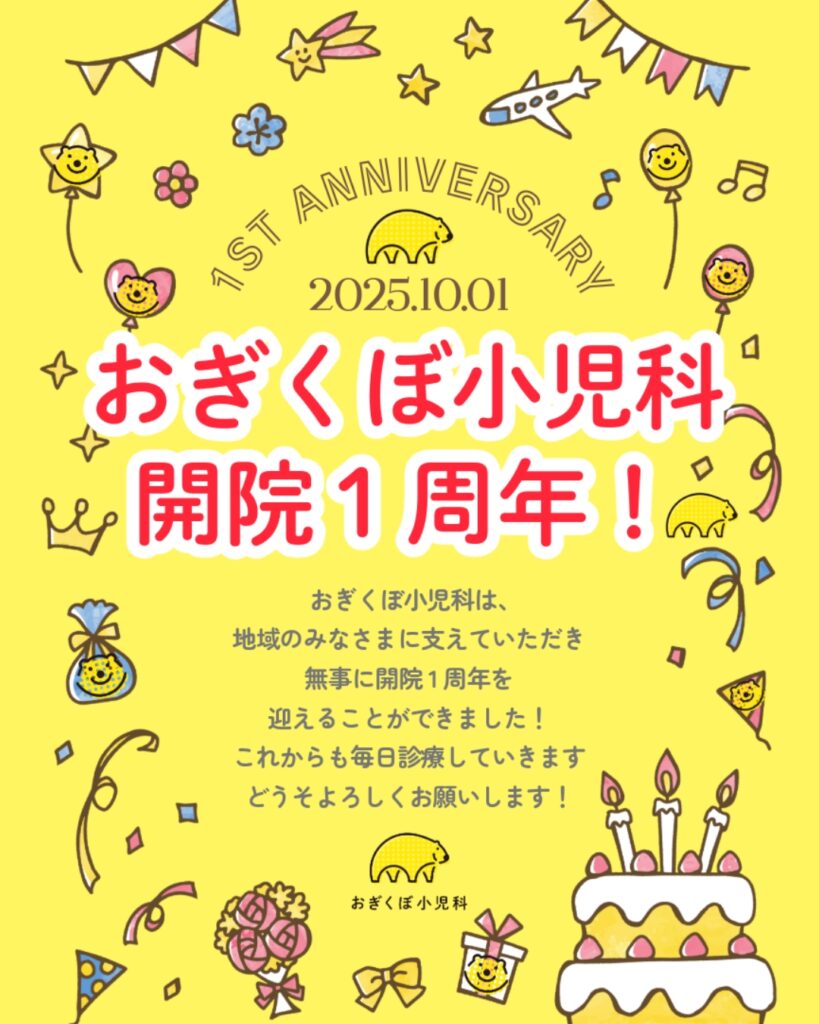 🎉🎉 【おぎくぼ小児科 開院1周年】🎉 🎉