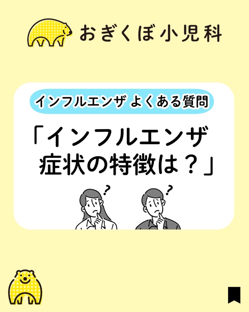 【インフルエンザの症状の特徴は?】 <症状の特徴> インフルエンザは突然はじまり、急激に高熱が出て、 全身が一気にしんどくなることが特徴です。 一般的な風邪とは…