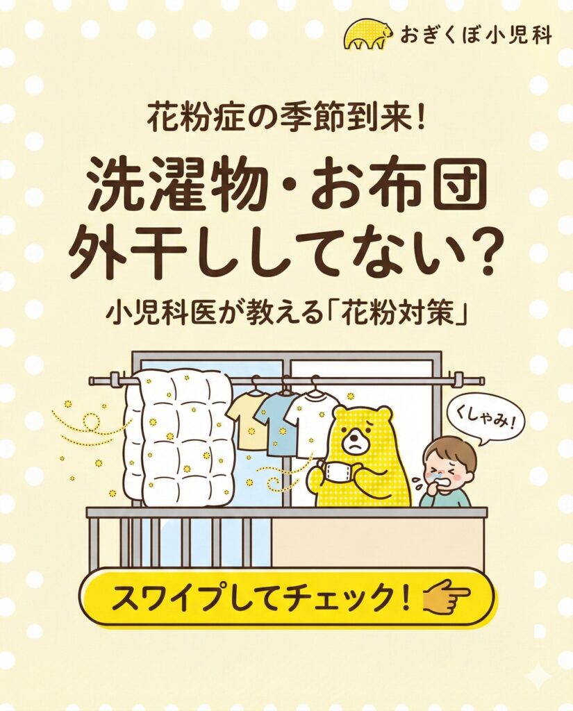 【まだ症状がないうちに!花粉症対策は先手必勝🌲】 こんにちは!おぎくぼ小児科です🐻🌼 寒い日が続いていますが、 そろそろ「あの季節」の気配を感じませんか…? そう、*… -