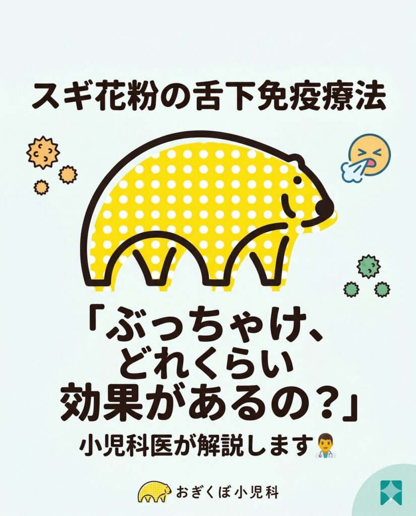 【スギ花粉症の舌下免疫療法、実際どれくらい効果があるの?】 ただいまスギ花粉がピークを迎えていますね🌲💦 お子さんが目をこすったり、くしゃみを連発して夜もぐっす… -