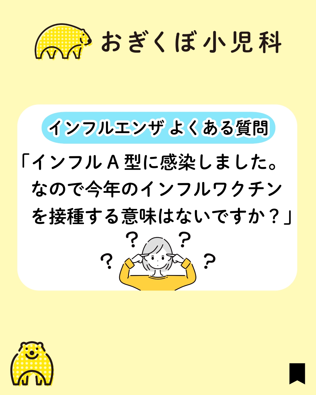 😉 【インフルA型に感染しました。なので今年のインフルワクチンを接種する意味はないですか?】