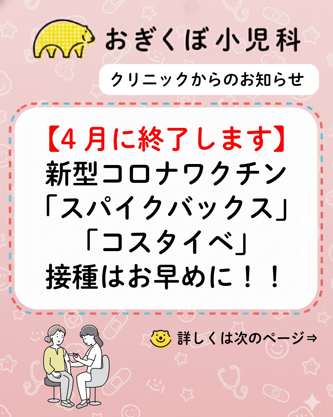 【まもなく終了!】今季分の新型コロナワクチンの接種可能期間がまもなく終了いたします!
