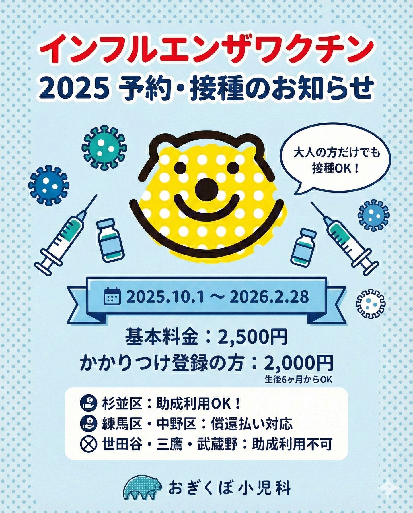 #おぎくぼ小児科 #インフルエンザワクチン #まだ間に合う #12月 #駆け込み接種 #荻窪 #杉並区