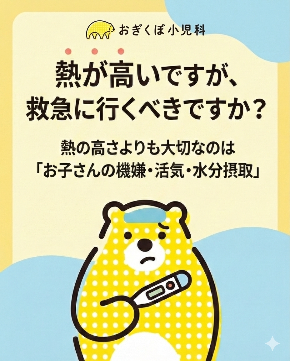 お子さんのお熱、心配ですよね💦 でも、お医者さんが大切にしている判断基準は、熱の高さそのものよりも**「お子さんの機嫌・活気・水分摂取」**なんです😌☝️