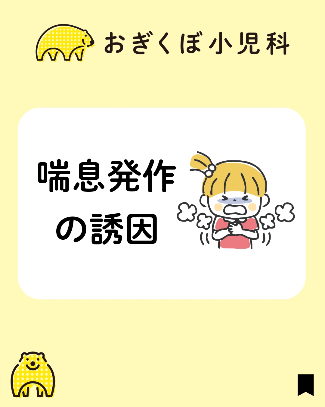 特にRSウイルス、ライノウイルス、インフルなど が発作を引き起こしやすいです。