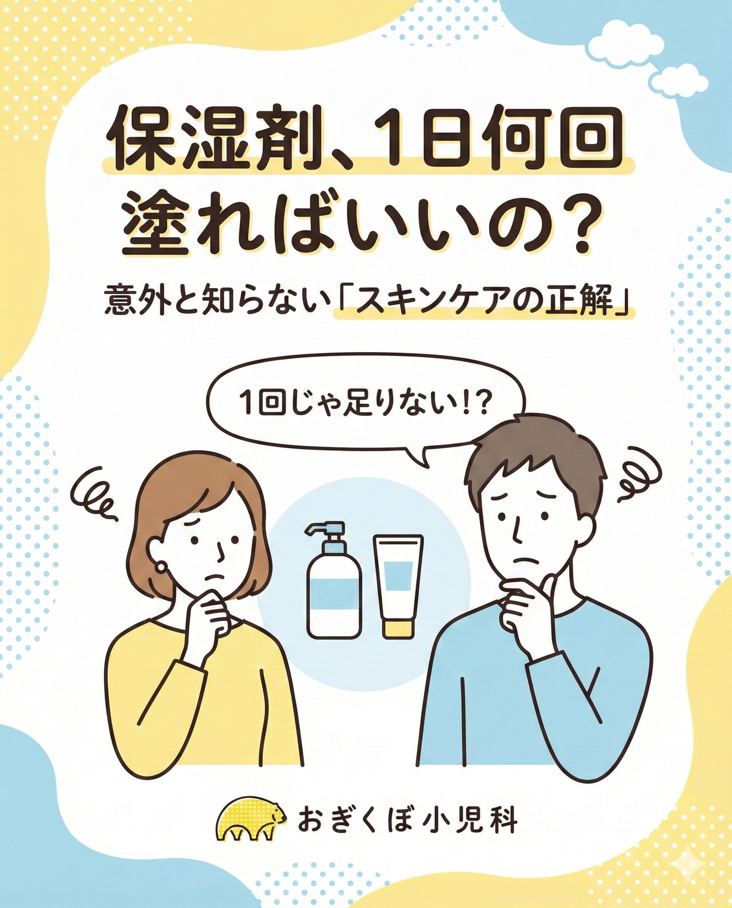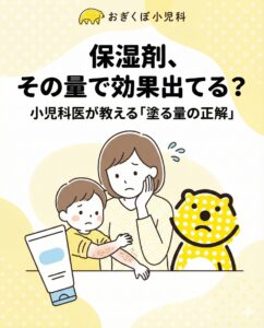 #おぎくぼ小児科 #小児科 #保湿剤 #赤ちゃんのスキンケア #子供のスキンケア #保湿ケア #乳児湿疹 #乾燥肌対策 #アトピー性皮膚炎 #子育ての悩み #育児ハック #ママの悩み #ベビースキンケア