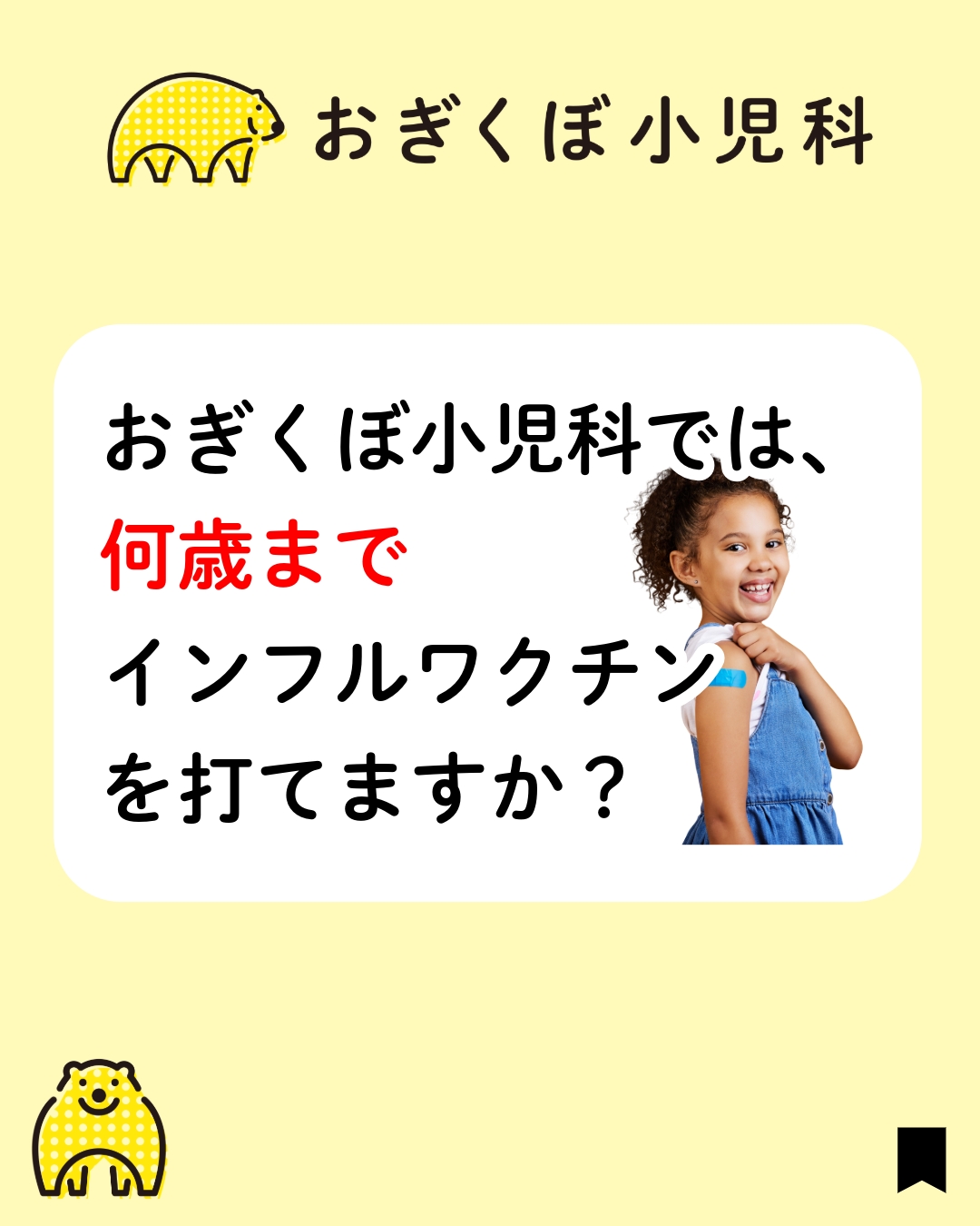 👶 【インフルワクチン何歳まで打てる?】 「生後6ヶ月以上であれば何歳でもOK」 おぎくぼ小児科では 生後6か月以降〜全年齢で接種可能です。 大人の方でもどなたでも 基本接種して頂くことは可能です! View this post on Instagram A post shared by おぎくぼ小児科 365日診療の小児科クリニック (@ogikubo_shonika) お知らせ よかったらシェアしてね! URLをコピーしました! URLをコピーしました! ⏰ 【インフルワクチンいつ打つのがベスト?】 関連記事 ⏰ 【インフルワクチンいつ打つのがベスト?】 ✌️ 【大人もインフルワクチン打てます!】 🚨 【子どもは蚊に刺されると強く腫れる!?】 💦 【秋の花粉症はいつまで続くの?】 🚨 【 予防接種を受けないという選択。その前に知っておいてほしいこと。 🌀 【インフルワクチンは毎年打つと体が慣れて効かなくなることがある?】 【2025年最新版】定期予防接種をすべて全額自己負担で受けたらいくら?全ワクチンの自費総額と内訳