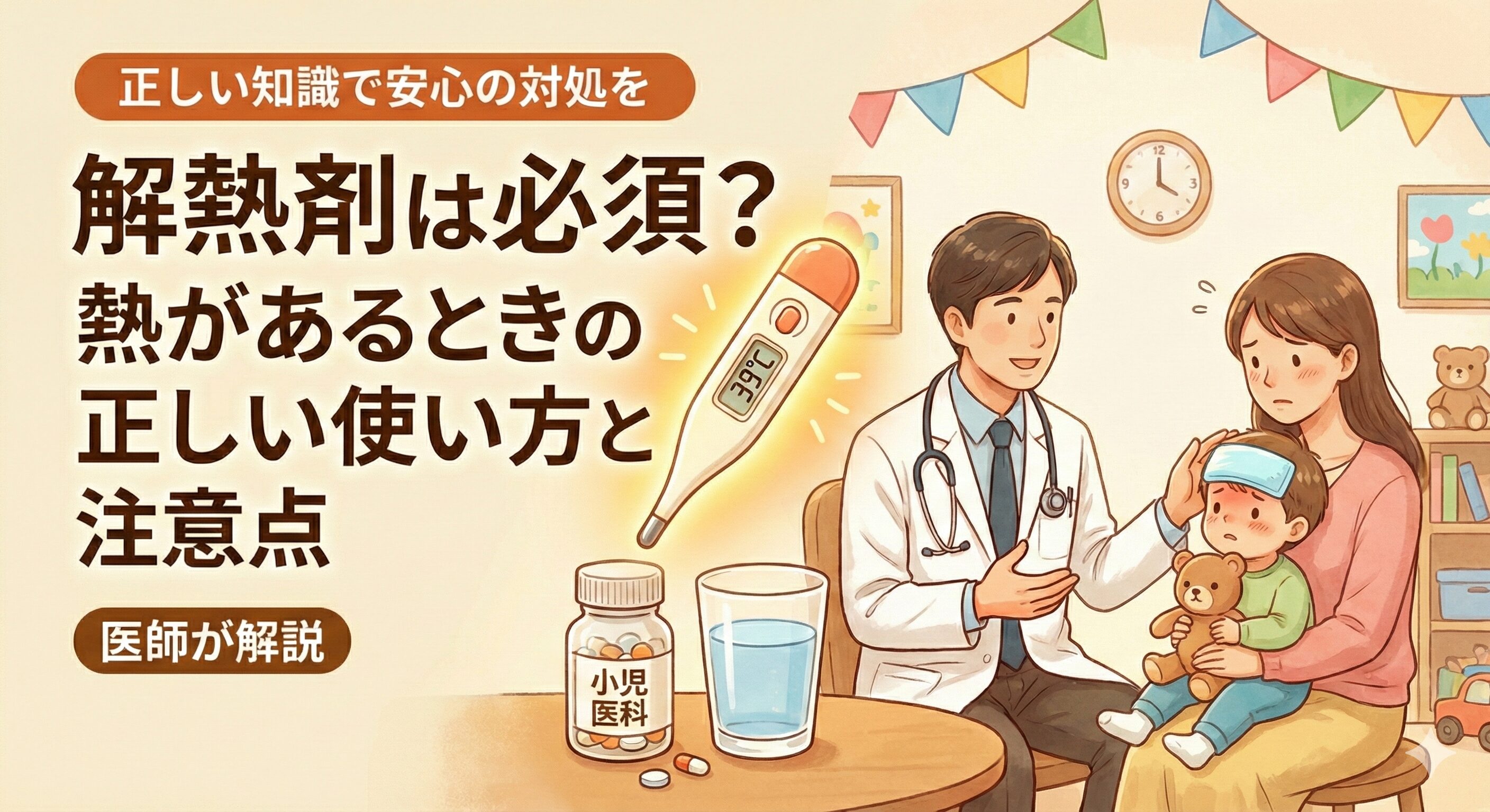 解熱剤は、発熱によるつらさを軽減するために有効ですが、使用しなければいけないものではありません。お子さまの体調を見ながら適切に使用してください。